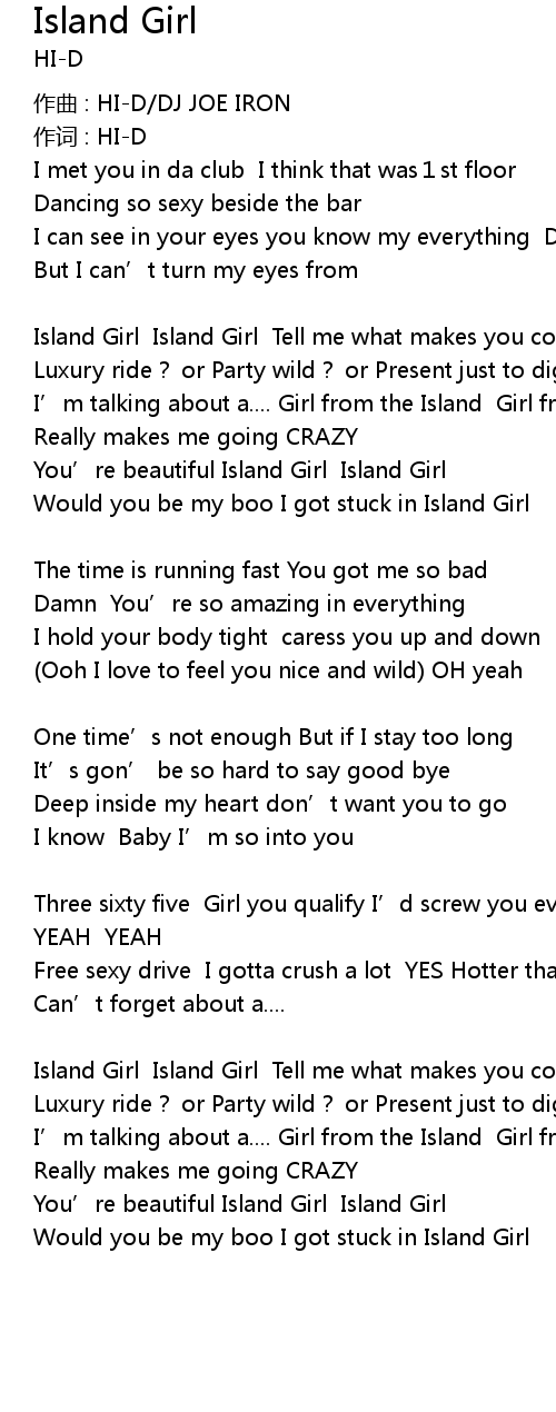 | Island Girl Island Girl Tell me what makes you come to my room | |