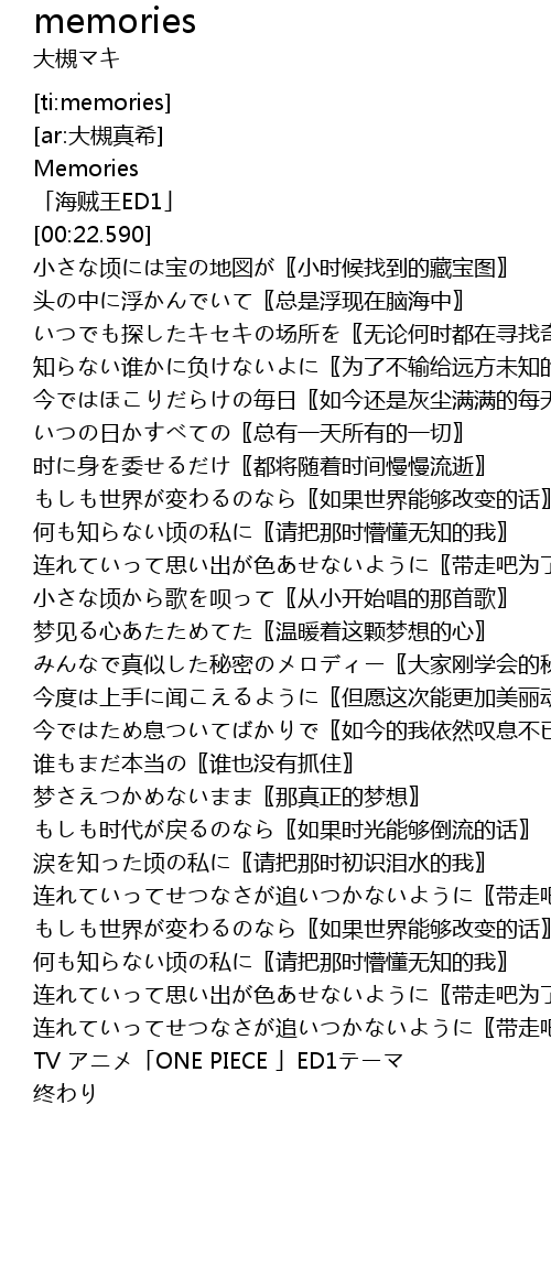 | [04:04.295] | TV アニメ「ONE PIECE 」ED1テーマ |