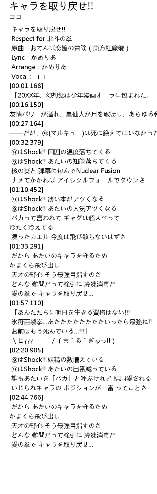 | [00:00.152] | キャラを取り戻せ!! |