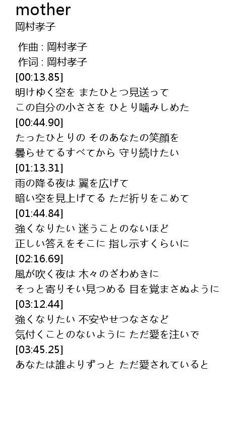 | [00:00.00] | 作曲 : 岡村孝子 |