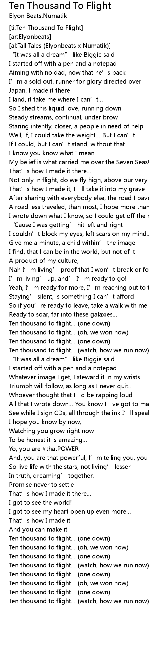 | [01:41.07] | Ten thousand to flight oh, we won now |