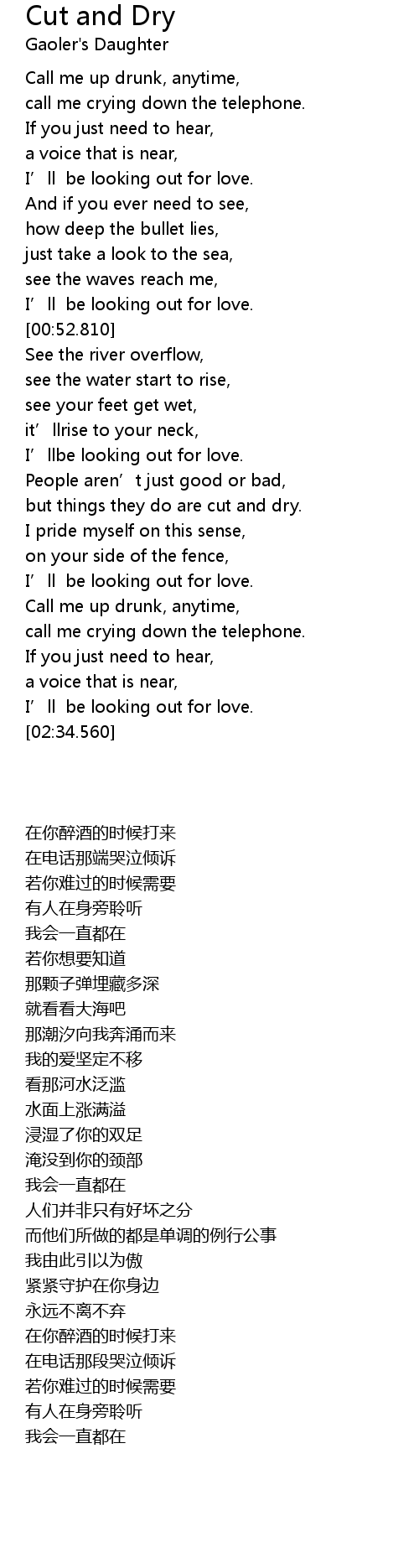 | 歌曲 | Cut and Dry |