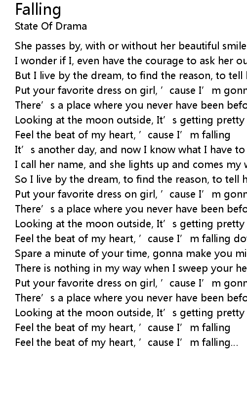 | [00:54.500] | Feel the beat of my heart, ' cause I' m falling |