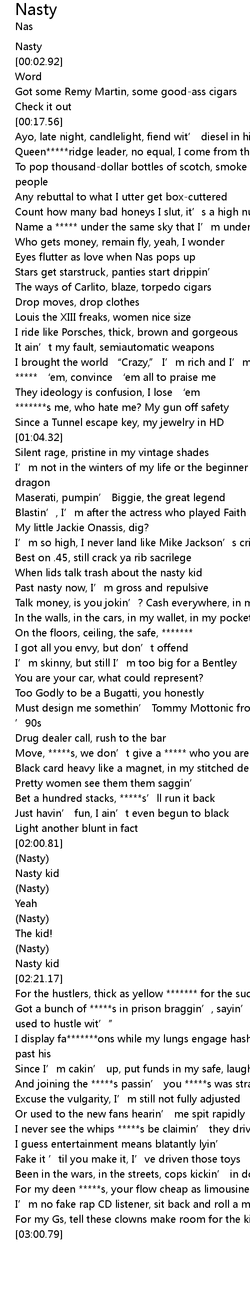 | [02:25.55] | Got a bunch of *****s in prison braggin’, sayin’ “It was Nas I used to hustle wit’” |