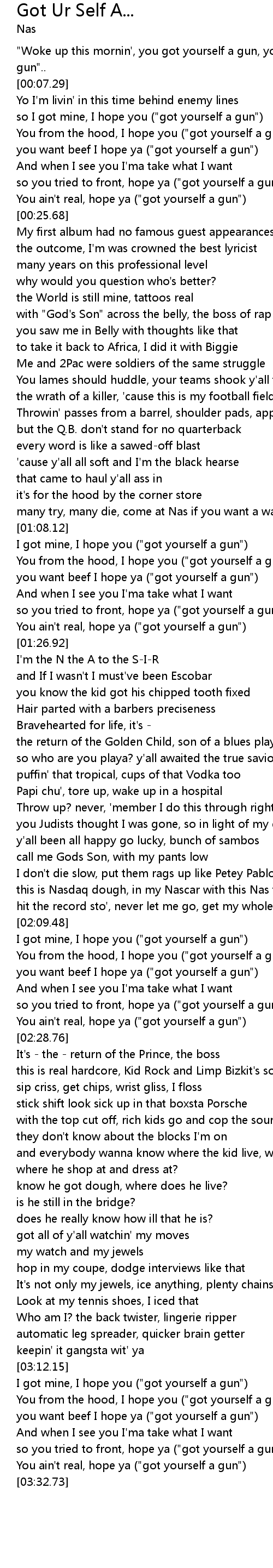 "Woke up this mornin', you got yourself a gun, you got yourself a gun".. |