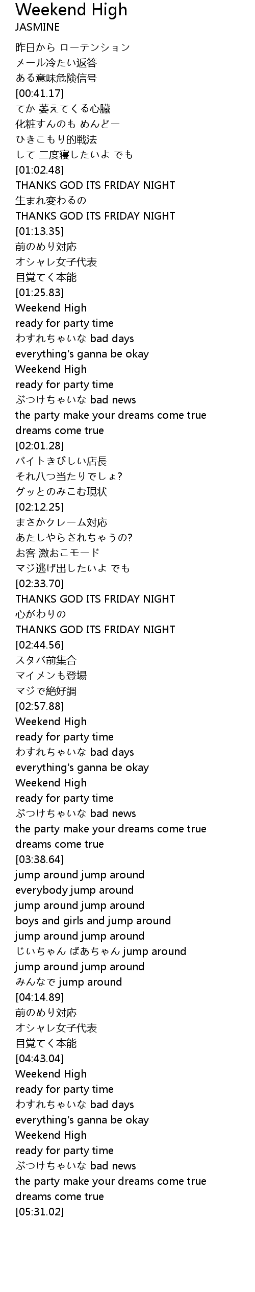 | [02:34.15] | THANKS GOD ITS FRIDAY NIGHT |