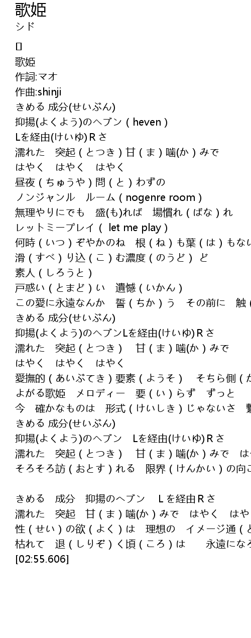 | [01:31.938] | よがる歌姫 メロディー 要(い)らず ずっと |