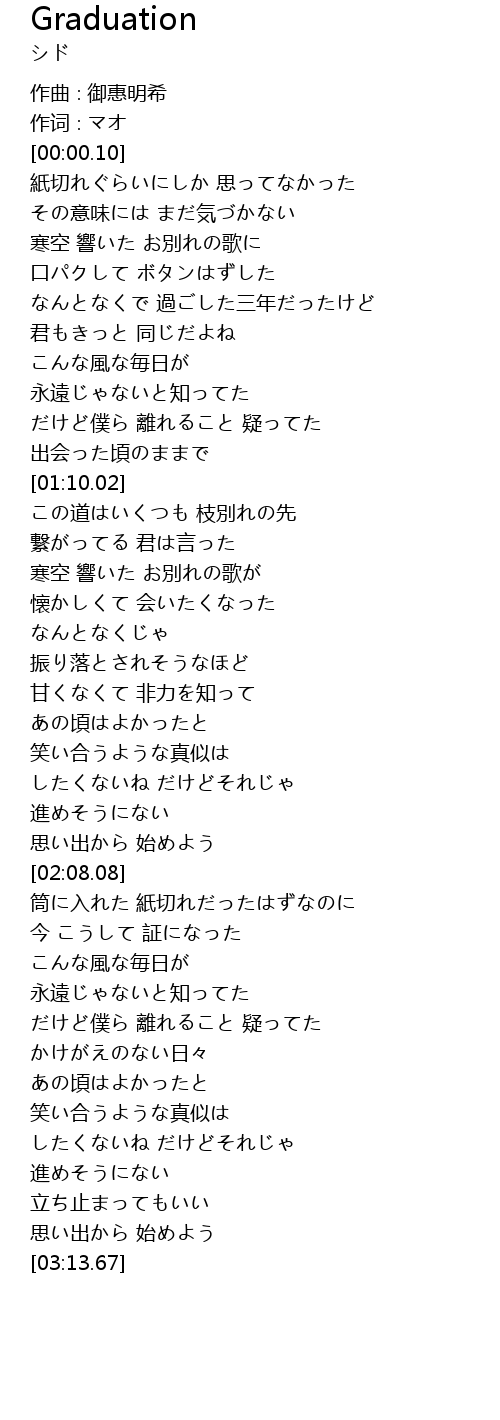 | [00:43.75] | なんとなくで 過ごした三年だったけど |