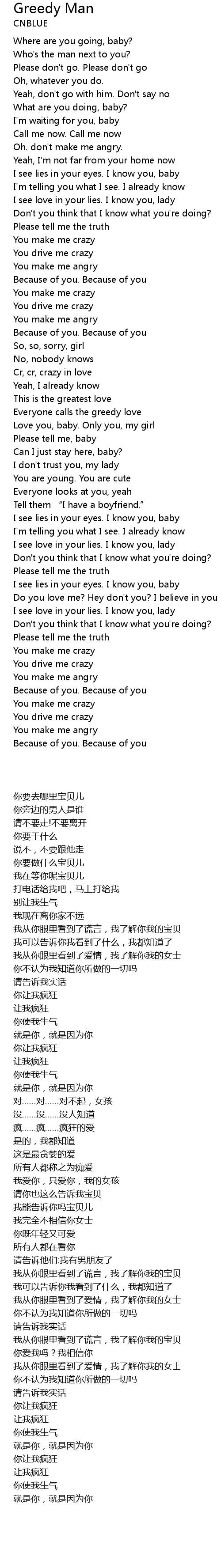 | [00:35.530] | I see lies in your eyes. I know you, baby |