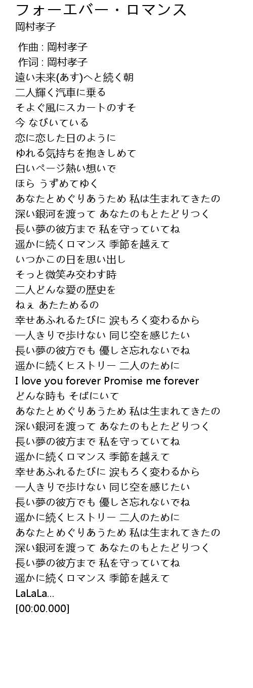 | [00:00.00] | 作曲 : 岡村孝子 |