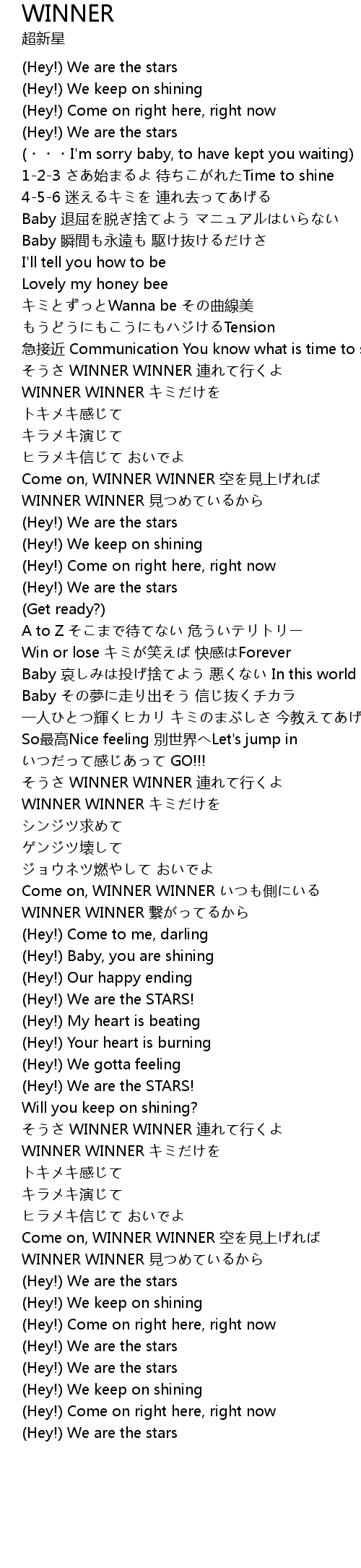 | Come on, WINNER WINNER kōng jiàn shàng | |