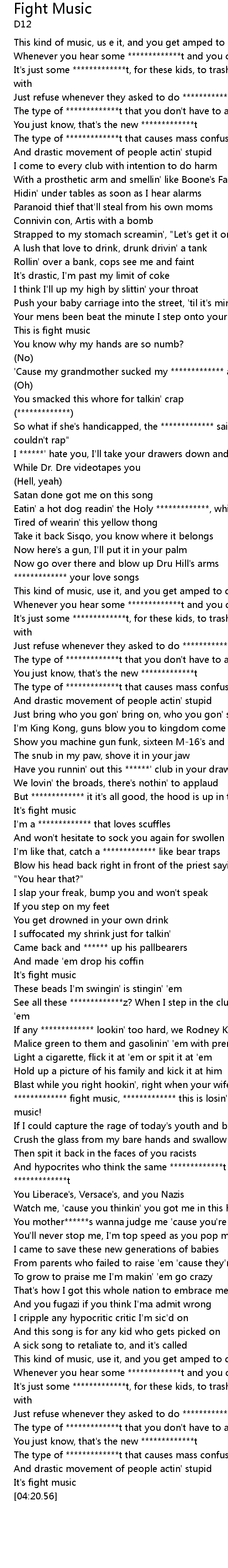 | [03:12.68] | ************* fight music, ************* this is losin' your life music! |