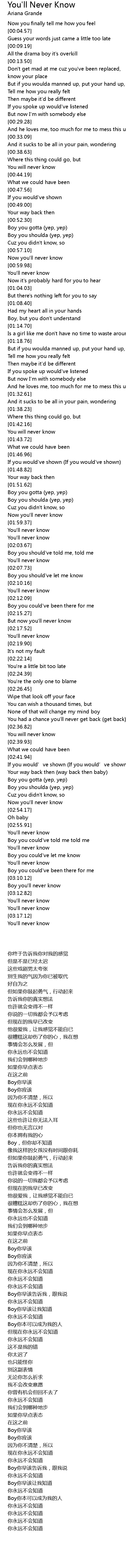 | [03:19.18] | 你永远不会知道 |