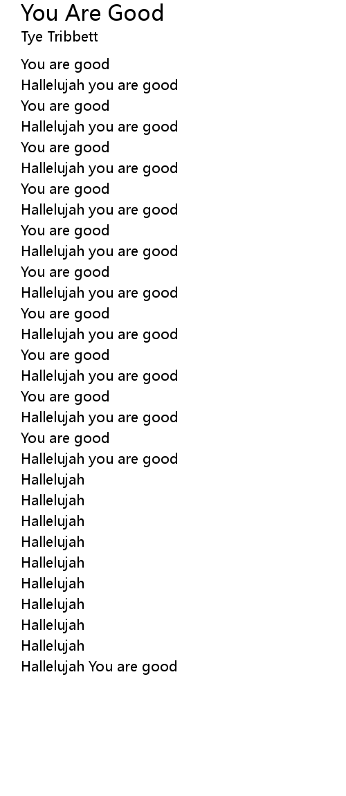 | Hallelujah you are good | |