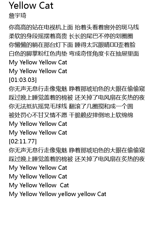 | [03:10.07] | My Yellow Yellow yellow yellow Cat |