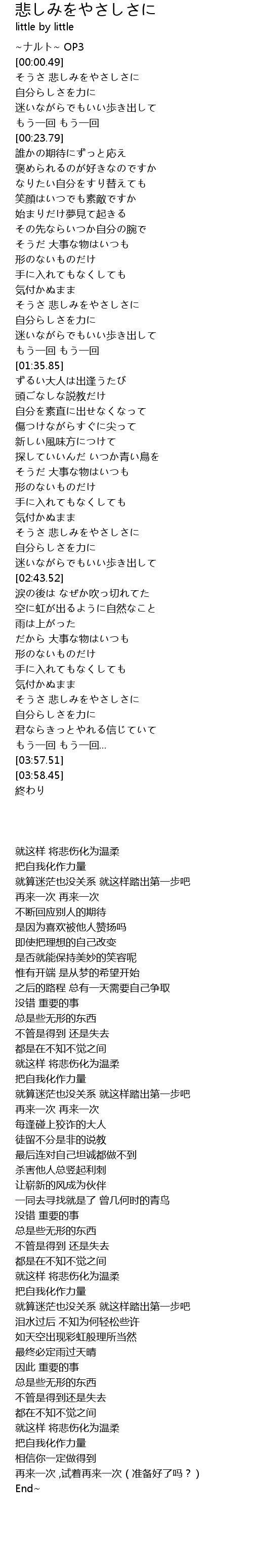 | [02:54.58] | 泪水过后 不知为何轻松些许 |