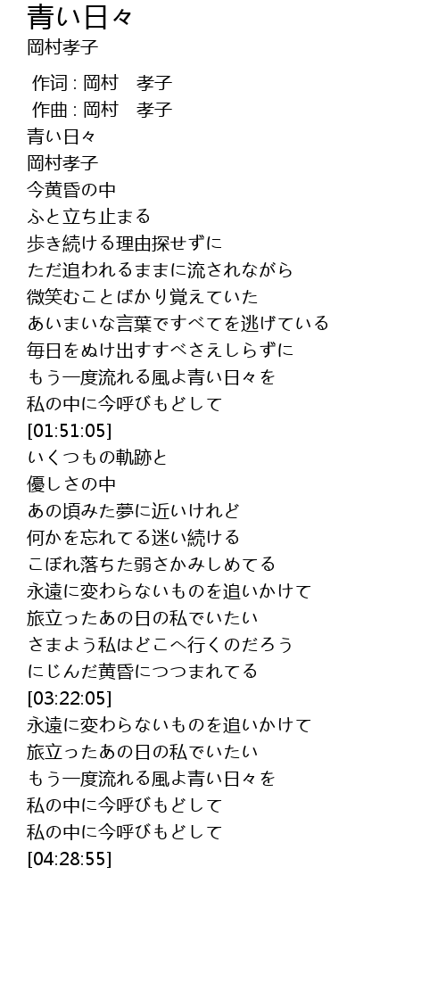 | [00:00.000] | 作词 : 岡村 孝子 |