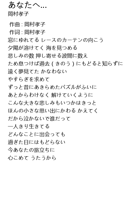 | [00:00.00] | 作曲 : 岡村孝子 |