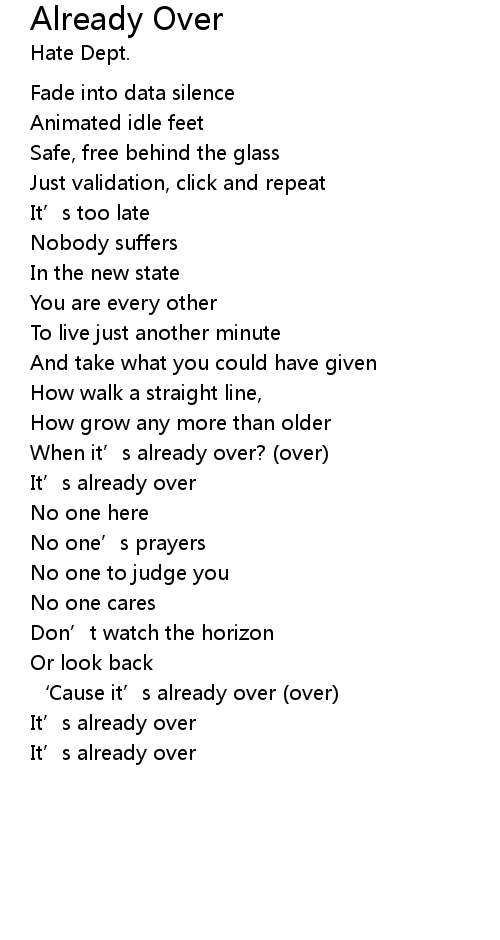 | ‘Cause it’s already over (over) | |