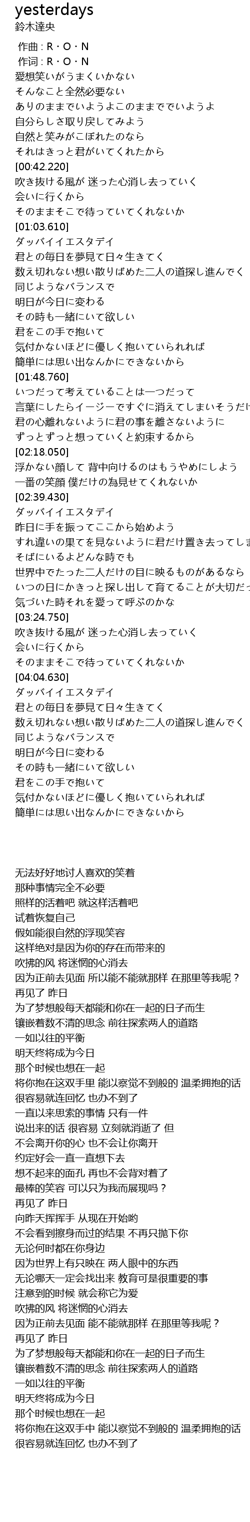 | [02:01.190] | 言葉にしたらイージーですぐに消えてしまいそうだけど |