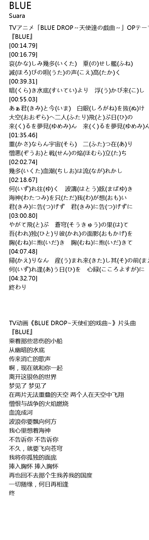| [00:04.79] | TV动画《BLUE DROP~天使们的戏曲~》片头曲 |