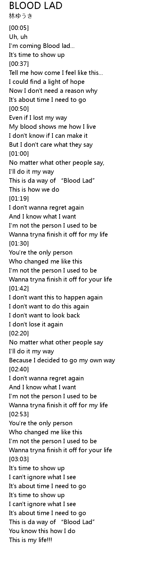 | [03:20] | This is da way of " Blood Lad" |