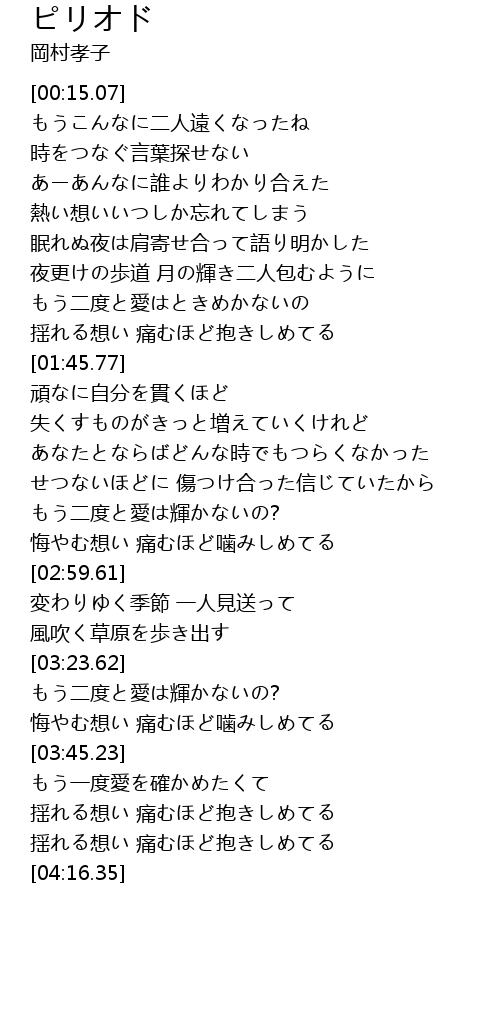 | [02:16.27] | あなたとならばどんな時でもつらくなかった |