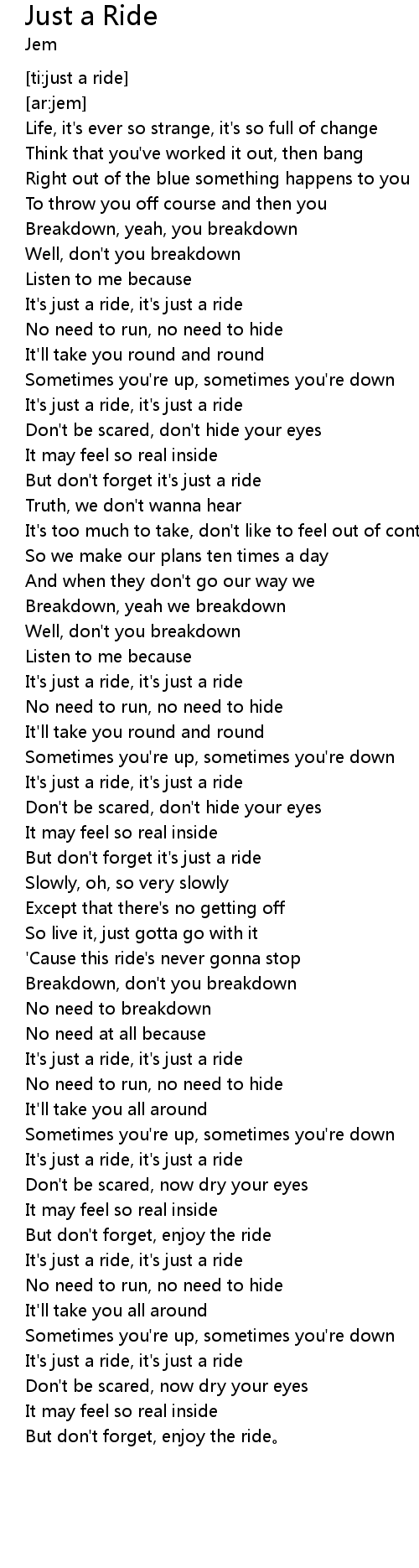 | [01:44.00] | It's just a ride, it's just a ride |