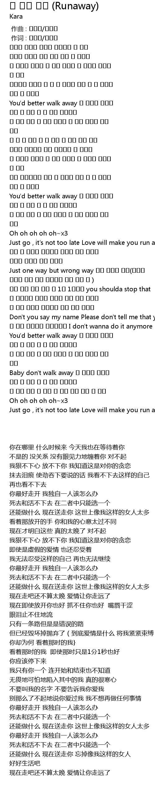 | [02:49.220] | Baby don't walk away 나 혼자서 어떡해 |