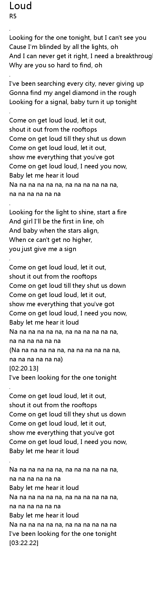 | [00:59.31] | Come on get loud loud, I need you now, |
