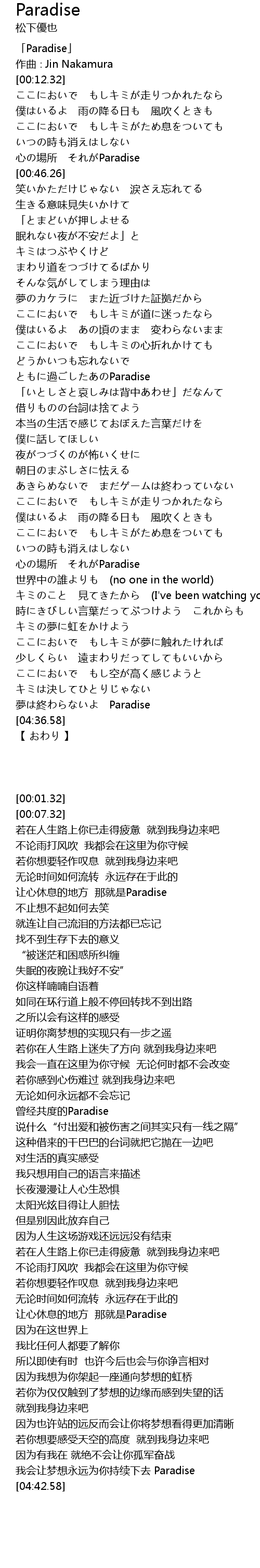 | [03:30.02] | 让心休息的地方 那就是Paradise |