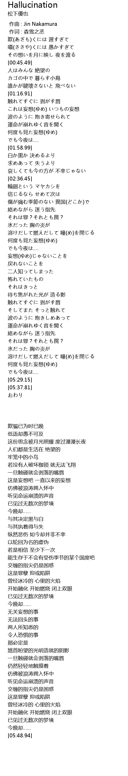 | [00:00.00] | zuo qu : Jin Nakamura |