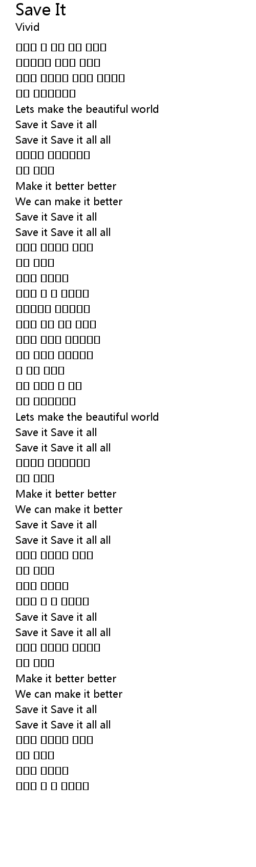 | [02:07.64] | Save it Save it all all |