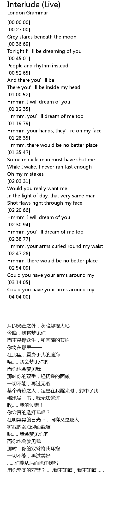 | [01:15.72] | Hmmm, you’ll dream of me too |