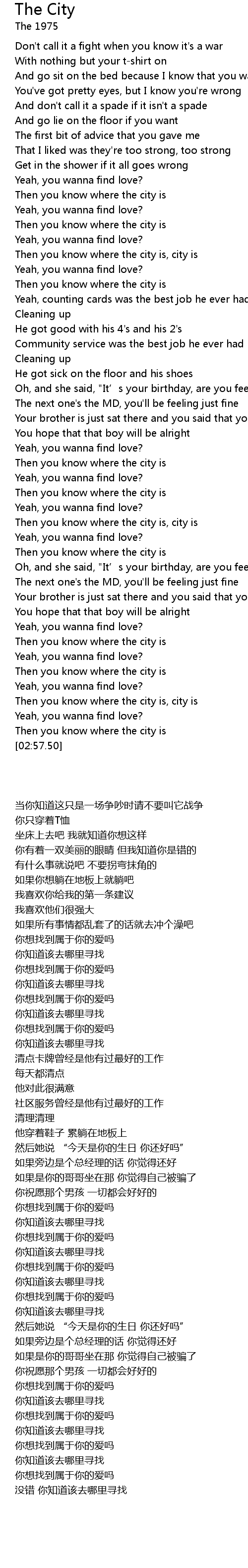 | [02:47.82] | Then you know where the city is, city is |