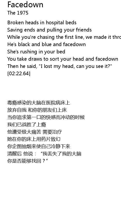 | [01:36.67] | He's black and blue and facedown |