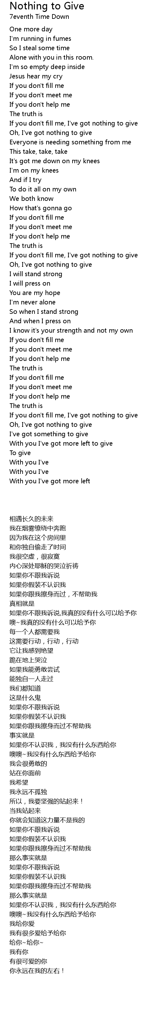 Oh, I've got nothing to give |