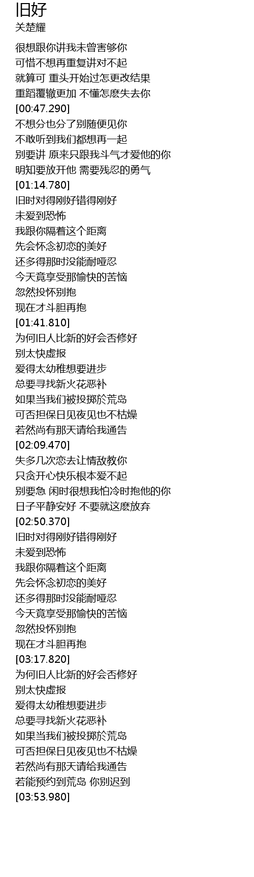 | [01:42.290] | 为何旧人比新的好会否修好 |