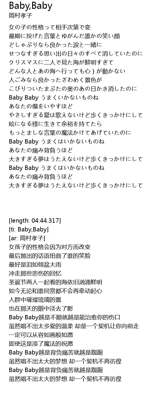 | [03:45.538] | Baby Baby越是背负痛苦就越是踟蹰 |