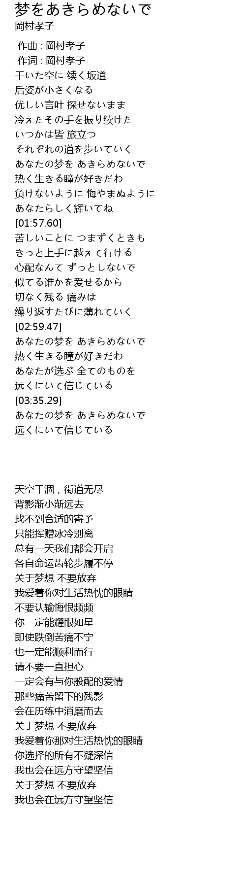 | [03:01.17] | あなたの梦を あきらめないで |