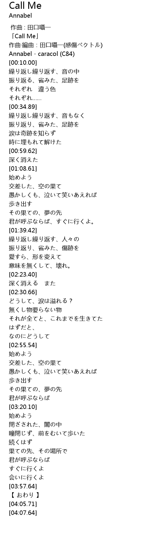 | [00:04.00] | 作曲·編曲:田口囁一(感傷ベクトル) |