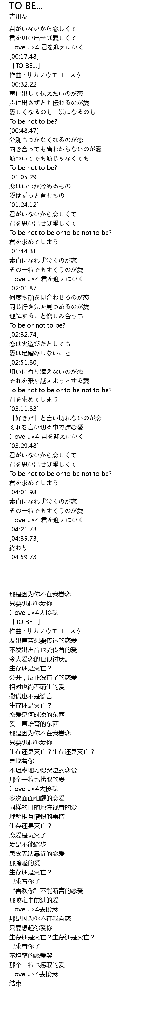 | [00:19.22] | 「TO BE...」 |