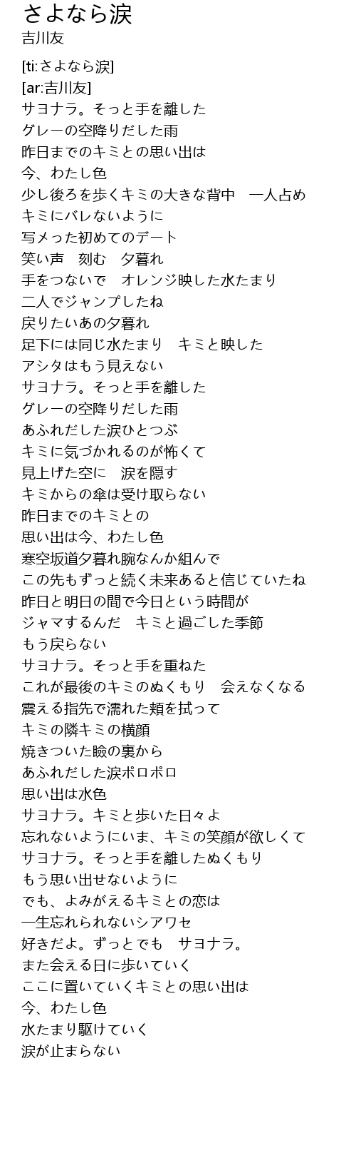 | [00:00.531] | サヨナラ。そっと手を離した |