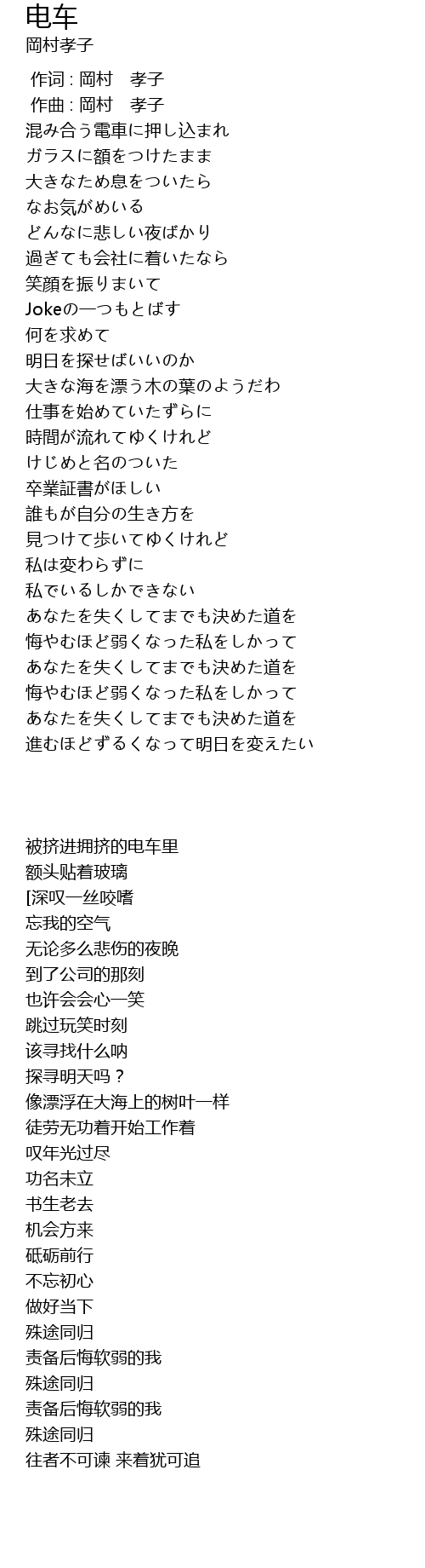 | [00:35.343] | 被挤进拥挤的电车里 |