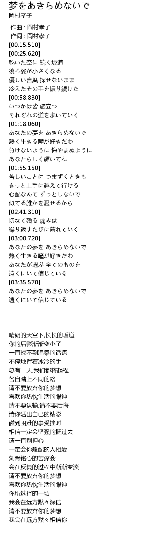 | [03:37.230] | あなたの夢を あきらめないで |
