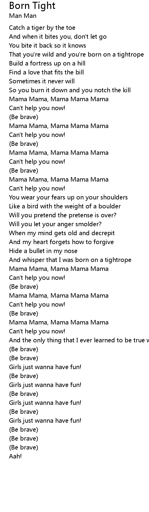 And whisper that I was born on a tightrope |