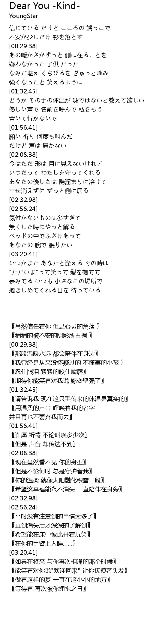 | [02:14.93] | いつだって わたしを守ってくれる |