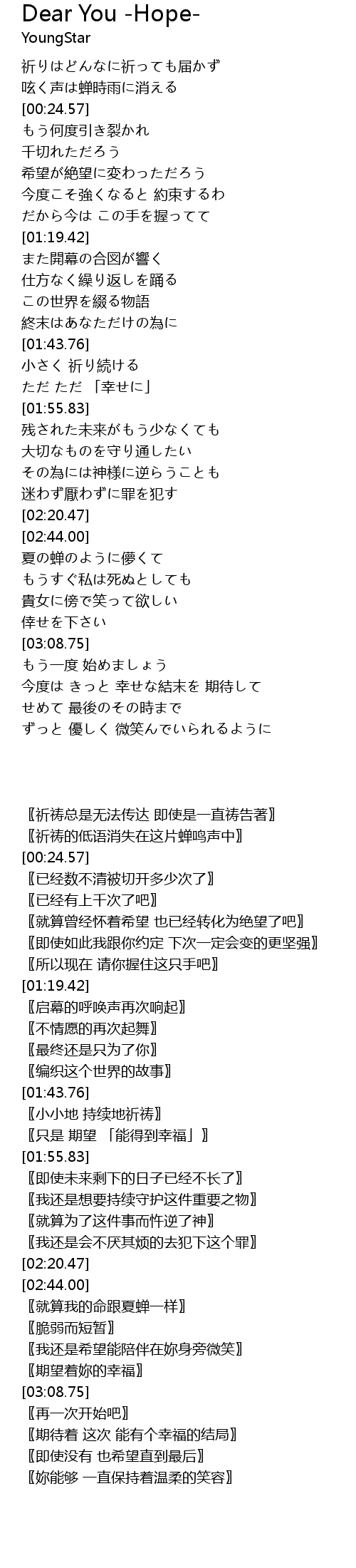 | [01:44.06] | 〖小小地 持续地祈祷〗 |