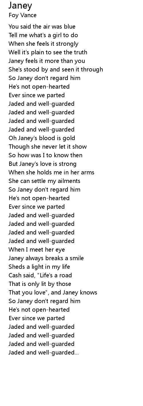 So Janey don't regard him |