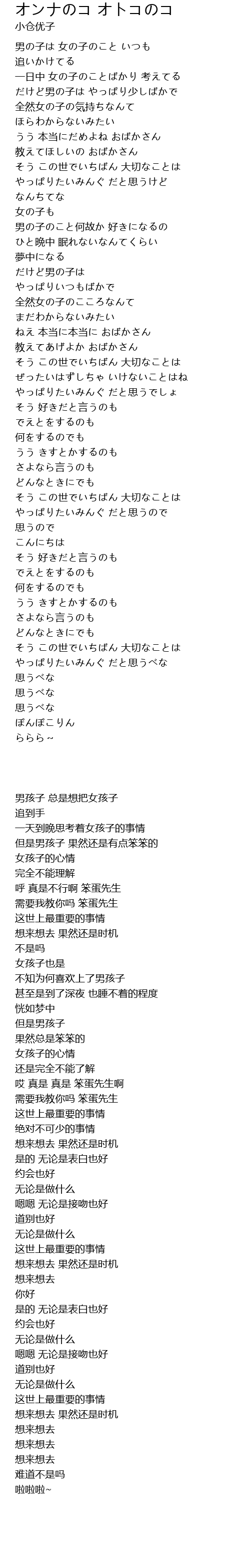 男の子は 女の子のこと いつも |